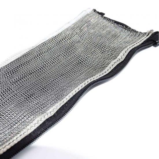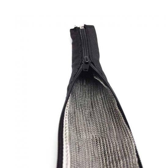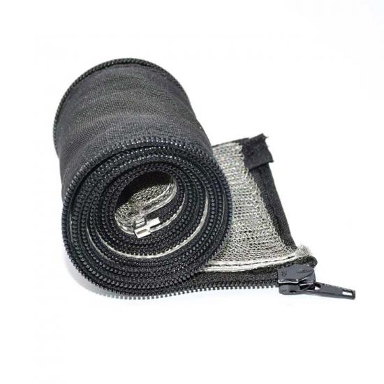 Zipper EMI shielding sleeves is made of tinned copper mesh,flame retardant polyester fabric with top grade nylon zipper.