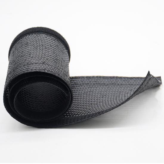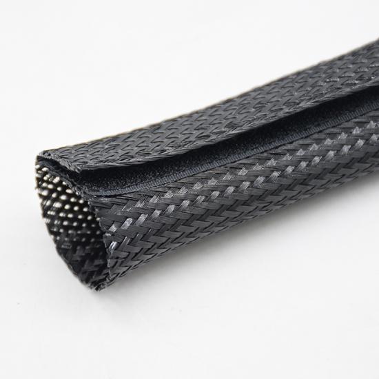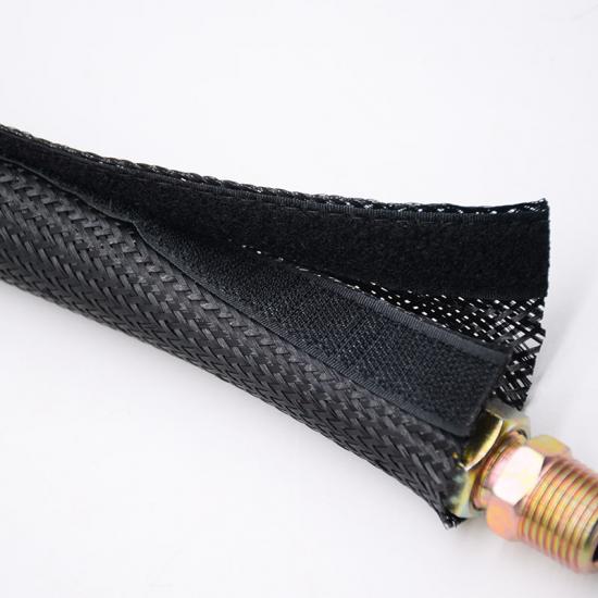 Hook & Loop Braided Cable Wrap Sleeving easily wrapped and closed over the cables. It can be re-opened rapidly to manage cables to be added or removed and breakouts can be made simply by bringing cables out through hook & loop. open weave design easily conforms to many irregular shapes.