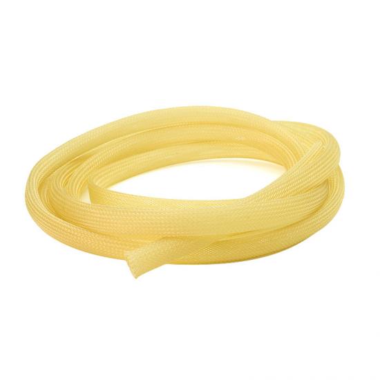 The braided construction of this sleeve provides excellent flexibility and allows it to conform to the shape of the cables or hoses it's protecting. The PEEK material offers exceptional resistance to chemicals, hydrolysis, radiation, and temperature extremes, making it suitable for use in a wide range of industries, including aerospace, automotive, electronics, and medical.